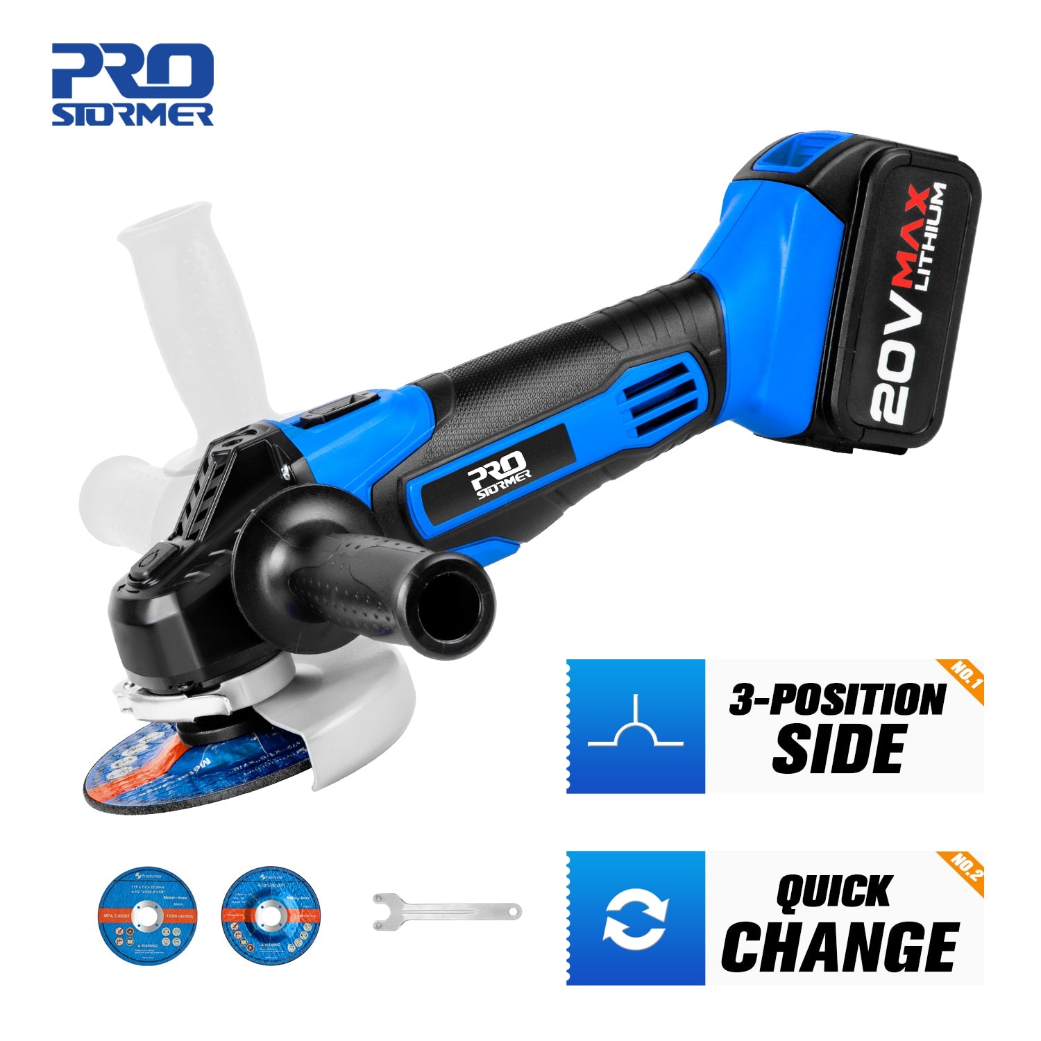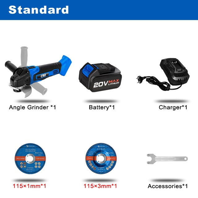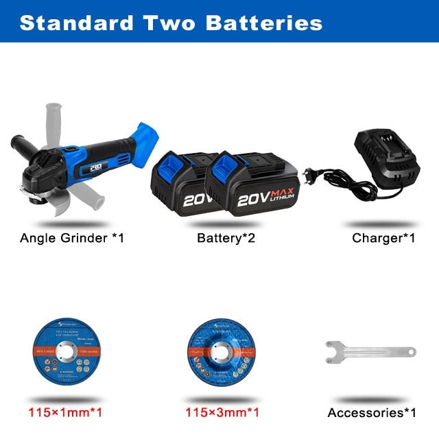 Cordless Angle Grinder 20V Lithium-Ion Battery Machine Cutting Electric Angle Grinder Power Tool By PROSTORMER